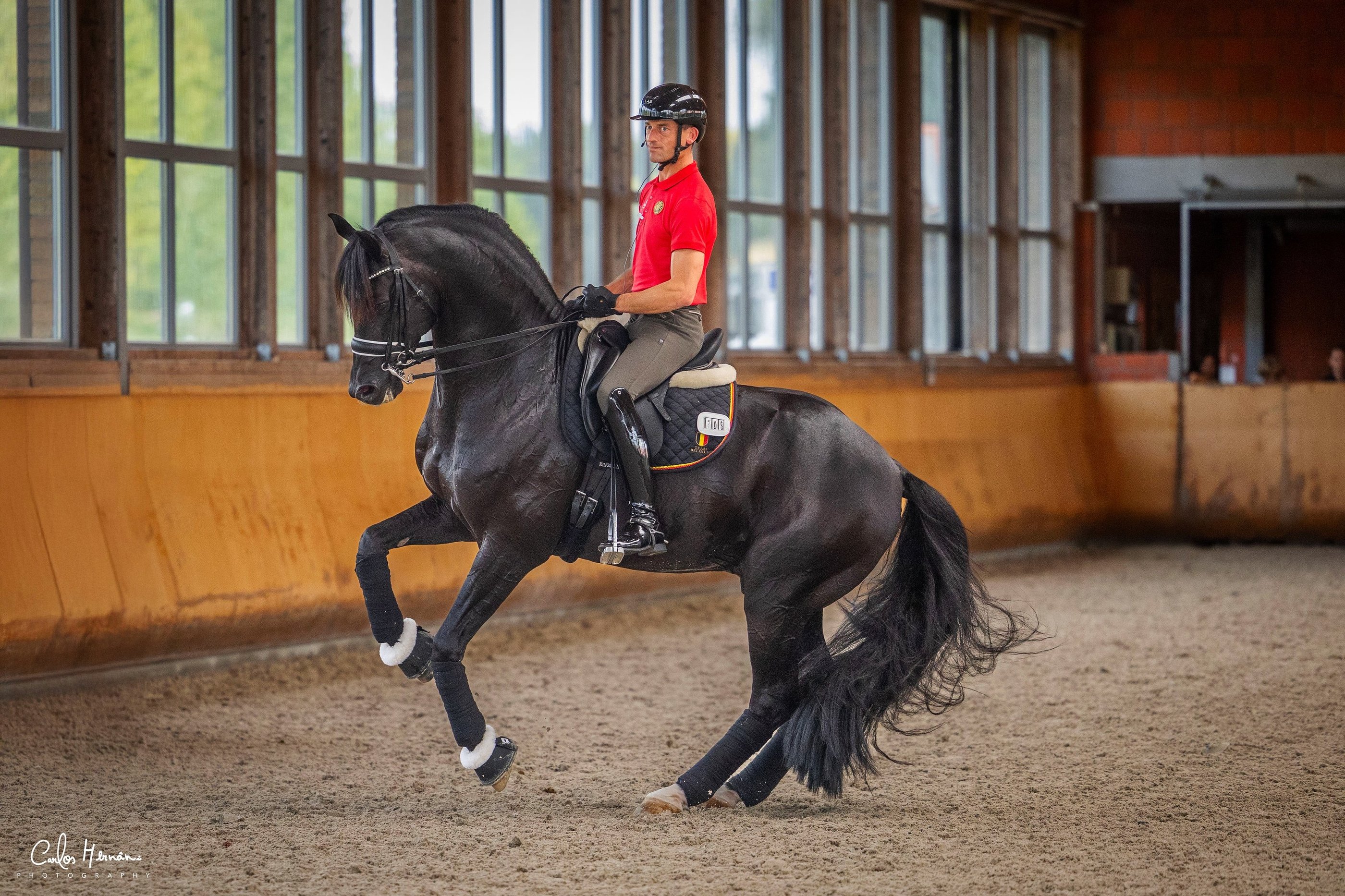 Recognised early for his natural talent, he pursued a professional career alongside Lusitano breeders in Belgium. He gained international recognition through the MCI competitions (Masters du Cheval Ibérique), becoming a multiple-time European Champion.